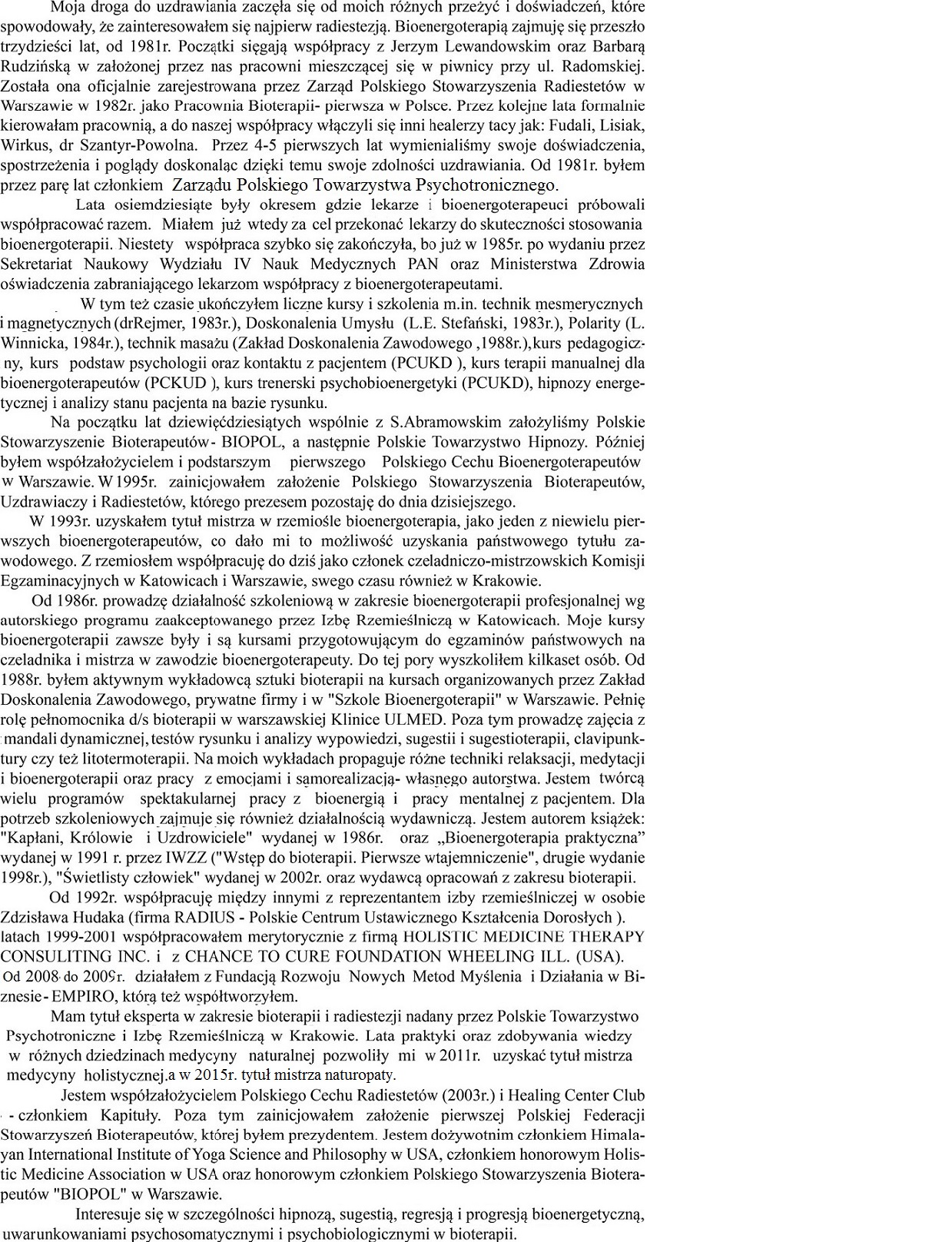 bioenergoterapii. Izba Rzemisła w Krakowie, 1993r.